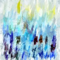 Waking at Dawn" is een abstract digitaal werk dat met brede penseelstreken de overgang van donkere nachtkleuren in donkerblauw, kastanjebruin en violet naar ochtendlicht in turkoois en goudgeel weergeeft, evenals de overgang van slaap naar waakzaamheid. De penseelstreken worden op sommige plaatsen aangevuld met kleurspatten en een…