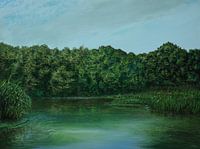 Dit schilderij straalt een unieke rust en sereniteit uit die de kijker onderdompelt in de avondstemming. Het herinnert ons eraan om de schoonheid van de natuur en de vredige stilte van het bos te waarderen, vooral op de speciale momenten van de schemering.