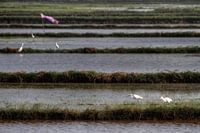 In de velden bij Hoi An lopen vogels langs de lijntjes.