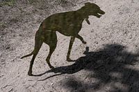 Collage van twee foto's en grafische bewerking van een hond.