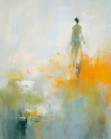 Walking in this world. Modern en abstract portret in pastelkleuren, groen en geel. Kies zelf het formaat en materiaal bij dit werk en maak het helemaal passend voor jouw interieur.