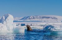 Wat een moment! Lekker met de zodiac aan het varen en dan ineens duikt deze walrus op tussen de ijsschotsen.