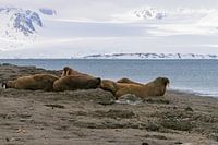 Op een klein eilandje op Spitsbergen liggen ze lekker te rusten, de walrussen. Een bijzonder dier dat rondom Spitsbergen leeft.