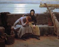 Voor ons zien we een oude vrouw die een jongere meid troost. Haar arm is om de schouder van de jonge vrouw geslagen, die haar hoofd in haar handen houdt en huilt om een visser die nooit…