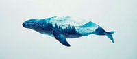 Een majestueuze walvis drijft door een wolkachtige oceaan, terwijl de natuur zich in zachte kleuren op zijn rug ontvouwt. De harmonieuze combinatie van water en landschap straalt een gevoel van rust en vrijheid uit. Dit kunstwerk is perfect voor de slaapkamer om een dromerige sfeer te creëren en je uit te nodigen om te ontspannen.
