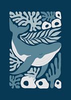 Dit kunstwerk verbeeldt de serene grootsheid van de walvis, die sierlijk door de oceaanstromingen glijdt, omringd door abstract koraal en zeebladeren. De vloeiende lijnen en gelaagde blauwe tinten roepen een gevoel van rust, diepte en stille kracht op - een herinnering aan de schoonheid en het ritme van het leven in zee.