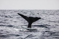 In Noorwegen komen veel verschillende walvissen voor. Dit is de staart van een potvis.