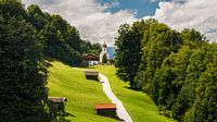 Het dorp Wamberg met uitzicht op de kerk van St. Anna. Wamberg is een van de hoogst gelegen kerkdorpen van Duitsland en ligt dicht bij de stad Garmisch-Partenkirchen, in Beieren, Zuid Duitsland.