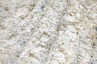 Wand van kalksteen in een oude kalkgroeve in Denemarken. Er worden veel fossielen gevonden.
