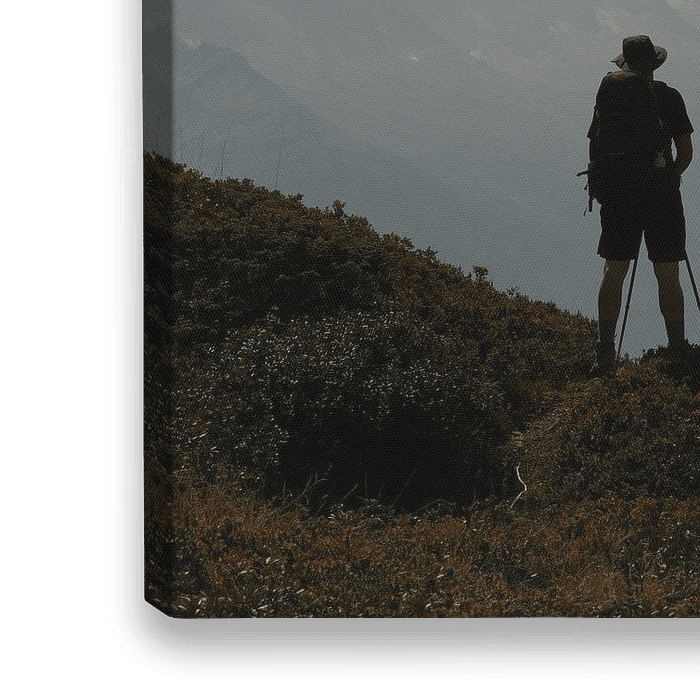 Over ‘Wandelaar kijkt uit over Mont Blanc gebergte’ van Evi Kuijpers