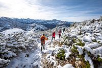 Wandelaars op de Iseler in lichte sneeuw