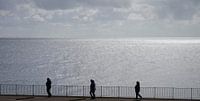 Drie wandelaars lopen over de waterkering die Noord-Holland met Friesland verbindt.