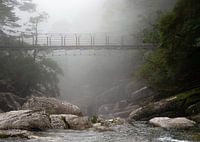 Foto genomen in de bossen van Yakushima op een vroege regenachtige ochtend in het voorjaar. Yakushima eiland ligt in het zuiden van Japan, beneden de Kyushu provincie. Vaak is het mistig boven de rivier in de ochtend.