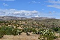 Op een van onze laatste dagen in Amerika in de mooie natuur van Arizona. Lage heuvels, cactussen, een canyon met een snelstromende rivier als gevolg van de vele regen. Het is er rustig, het wandelpad is begroeid met een soort gras wat in de sokken haakt. Je kunt je verloren voelen in dit landschap. Het is erg mooi.