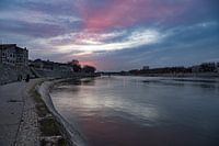 Het is mooi wandelen langs de rivier de Rhône, zeker bij zonsondergang.