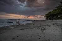 Een romantische wandeling bij een ondergaande zon op een strand in costa Rica