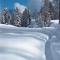 sneeuw, pad, mensen, wandelaars, bomen, besneeuwd,