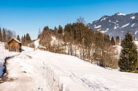 Wandeling in winterlandschap met sneeuw in Allgäu Duitsland