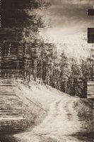 Uitzicht in Zuid-Tirol op wandelpad in Sephia . Ik vernietig foto's met een willekeurig algoritme. De resultaten zijn futuristische "glitch art" werken.