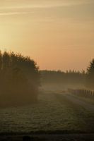 Een wandelpad in het Waterrijk (park Lingezegen bij Elst) in de vroege ochtendmist.