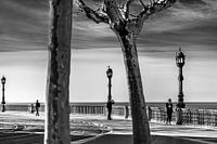 De klassieke sfeer van het wandelpad langs de oceaan wordt benadrukt door het type lantaarn welke om de zoveel meter in de afscheiding verwerkt is en de afbeelding in zwart-wit probeert die nostalgie te onderstrepen.