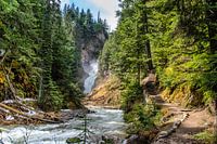 Wandelpad naar de waterval, Canada. Britisch Columbia. In Glacier Nationaal Park.