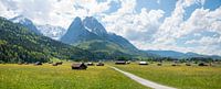 Wandelroute van Garmisch naar Obergrainau. Lentelandschap in Opper-Beieren.