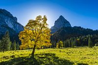 esdoorn bij Wankerfleck, daarachter de Geiselstein, 1882m, Ammergauer Alpen, Ostallgäu, Beieren, Duitsland, Europa.