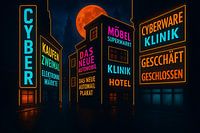 Cyberpunk NeonArt DigitalArt LichtgevendeHuizen Avondlucht