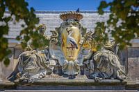 Wapen van Den Haag op de gevel van het oude stadhuis aan de Dagelijkse Groenmarkt
