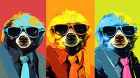 Elk van de drie luiaards is ondergedompeld in een eigen unieke kleur die hun persoonlijkheid en houding benadrukt. Met zonnebrillen die hen een ongedwongen coolheid geven, lijken ze klaar voor een zomerse dag, onverschillig voor de haast en drukte van de wereld. De contrasterende stropdassen voegen een element van menselijke formaliteit toe, een speels commentaar op de vaak te ernstige zakelijke wereld. Het kunstwerk nodigt de kijker uit om te lachen om de absurditeit en te genieten van de simpele vreugde die zulke ongewone afbeeldingen kunnen brengen.