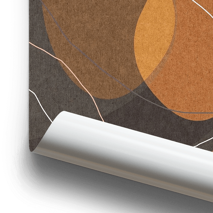 Eenvoudige organische vormen en lijnen in warme aardkleuren.