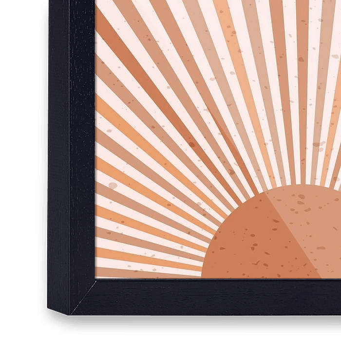 Een gestileerde zonnestraal in diep terracotta en rijke warme bruintinten brengt nostalgische charme naar deze moderne abstracte poster. Geïnspireerd door vintage design en minimalistische symboliek straalt de centrale zon handgetekende textuur en warmte uit. De vectorachtige eenvoud wordt versterkt met subtiele korreleffecten, waardoor…