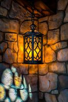 Een warm, zacht licht stroomt uit een sierlijk versierde lantaarn die aan een ruwe stenen muur hangt. De ingewikkelde patronen werpen fascinerende schaduwen die een gezellige, uitnodigende sfeer creëren. Deze lantaarn is ideaal voor in de woonkamer, geeft de kamer een gezellig tintje en laat elke avond stralen met zacht licht.