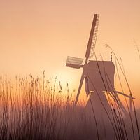 Een mooie zonsopkomst bij een van de molens in de Alblasserwaard. Heerlijk zijn dit soort ochtenden waarbij de mist nog boven het land hangt.