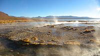 Een warm water bron met stoom in de vroege ochtend, Bolivia, Zuid- Amerika.