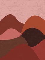 In dit kunstwerk worden abstracte bergen tot leven gebracht in een mix van warme kleuren en tinten, die prachtig samensmelten en de serene sfeer oproepen.