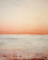 Warme Overgang - Dit serene schilderij omarmt het minimalistische met zijn zachte gradaties die naadloos overgaan van een warme Peach Fuzz horizon naar kalme neutrale tonen. De subtiele textuur verrijkt het abstracte landschap, perfect voor een touch of sophistication in een modern interieur.