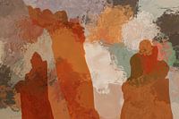 Dit abstracte kunstwerk heeft een mix van warme aardetinten, waaronder rood, oranje, roze en bruin, in een moderne abstracte expressionistische stijl. Het gebruik van moderne vormen en lijnen creëert een dynamisch effect en roept een gevoel op van een levendig en vloeiend landschap. De pastelkleuren die in dit kunstwerk worden gebruikt stralen een kalmerend en rustgevend aura uit, waardoor het een perfecte toevoeging is aan elke ruimte waar ontspanning gewenst is. De ingewikkelde patronen en vormen voegen diepte en textuur toe aan het werk, waardoor het een boeiende toevoeging is aan elke collectie. Dit kunstwerk is een voorbeeld van moderne abstracte kunst, waarbij het gebruik van warme kleuren en moderne vormen een meeslepende ervaring creëert. Het is een perfecte gespreksstarter in elk huis, kantoor of openbare ruimte, en de warme tinten zullen iedereen die het bekijkt inspireren en boeien.