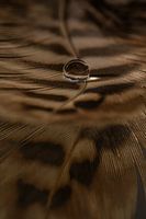 "Warme bruine tinten van een fazantenveer" is een macrofoto van een waterdruppeltje dat rust op een fazantenveer. Doordat de veer op een spiegelend oppervlak ligt, lijkt de reflectie van de veer (aan de onderzijde van het werk) een abstracte weergave van de veer (als je inzoomt kun je dat zien)