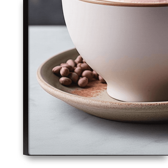 Warme chocolademelk met slagroom. Super leuk om bijvoorbeeld in de keuken te hangen. Kies zelf het formaat en materiaal bij dit werk en maak er een echte blikvanger van in jouw interieur.