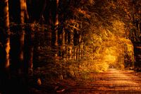 Warme herfstkleuren kleuren de beuken langs een oude landweg in de bossen in Drenthe op een mooie november namiddag - Boswachterij Gieten