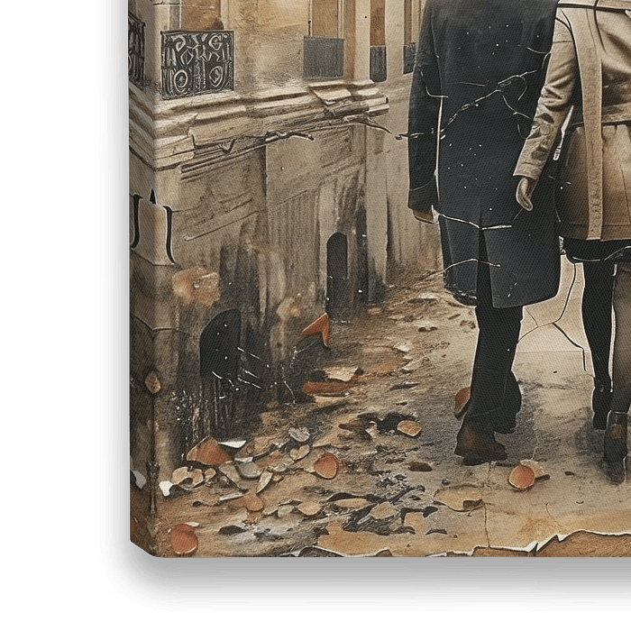 Een sfeervol schilderij van een koppel dat langs de Seine wandelt straalt romantiek en warmte uit. Een tijdloos tafereel dat gevoelens van liefde en verbondenheid oproept.