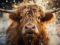 Dit prachtige fine art kunstwerk toont een Schotse Hooglander in zachte oranje tinten tijdens de sneeuw, waardoor een sfeer van warmte en rust ontstaat. De majestueuze uitstraling van de Hooglander is vastgelegd met oog voor detail en precisie. Dit kunstwerk past perfect in een landelijk, rustiek of natuurlijk geïnspireerd interieur. De lichte en oranje tonen roepen een gevoel van sereniteit op en brengen de charme van het Schotse platteland naar binnen.