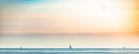 Een heerlijk warme foto van een warme dag aan het strand. Mooie warme pastel kleuren.