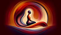 Dit door AI gecreëerde kunstwerk, getiteld "Warmte Omhelzing", is een visuele symfonie van harmonieuze rondingen en verzachtende kleurgradaties. Centraal staat een mensachtige figuur omhuld in een cocon van golvende lijnen, die een gevoel van kalmte en introspectie uitbeeldt.