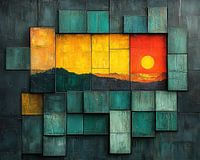 Warmth of the Iberian Sunset - Dit is een abstract schilderij dat een typisch Portugese landschap in levendige kleuren en een moderne benadering afbeeldt.