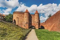 Die Barbakane wurde 1548 vom venezianische Festungsbaumeister Giovanni Battista di Venezia (genannt Venetus) erbaut. Sie diente als Zugangstor zur Altstadt und ist direkt in die Stadtmauer integriert. Zwischen 1953 und 1963 wurden Teile der Stadtmauer und die Barbakane rekonstruiert, Warschau, Masowien, Polen, Europa |
