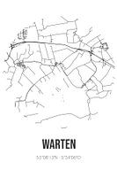 Zwart-witte landkaart, stratenplan of plattegrond van Warten. Warten is gelegen in de gemeente Leeuwarden, provincie Fryslan. Op de stadskaart zijn alle openbare wegen in Warten opgenomen. Verder is de kaart voorzien van de coördinaten van het centrum van Warten.