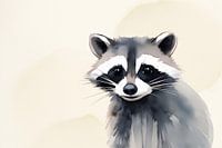 Deze prachtige illustratie toont een wasbeer op een verfijnde en unieke manier. Het ontwerp is in een zachte aquarelstijl gemaakt en brengt de schattige kenmerken van dit dier prachtig naar voren. Met zachte tinten van grijs, wit en zwart straalt het ontwerp een moderne en minimalistische sfeer uit, perfect voor een stijlvolle ruimte zoals een slaapkamer of een kantoor. De vriendelijke en expressieve blik van de wasbeer trekt meteen de aandacht en brengt een speelse, maar toch elegante touch aan de ruimte. Dit ontwerp is ideaal voor dierenliefhebbers die houden van abstracte kunst met een natuurlijke flair. De subtiele kleuren en het speelse karakter maken het geschikt voor diverse interieurs.